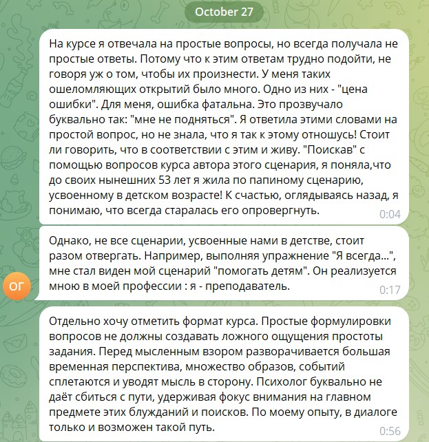 «Простые вопросы, но непростые ответы. Психолог не давал сбиться с пути, помогал удерживать внимание на самом главном».